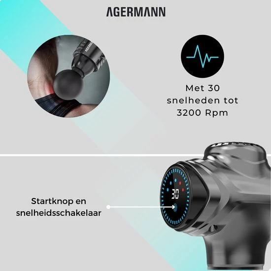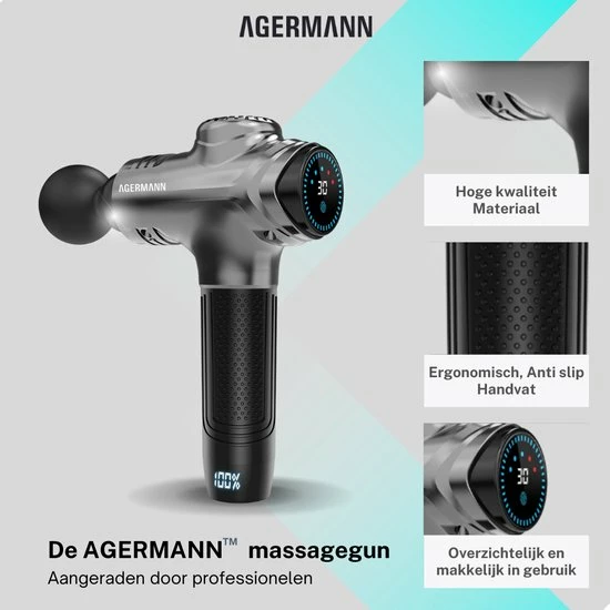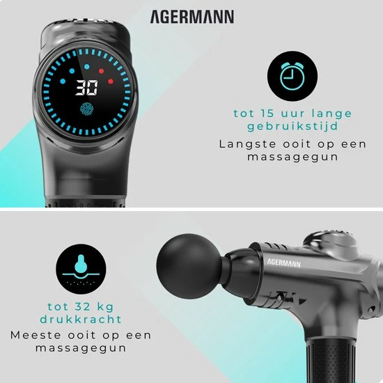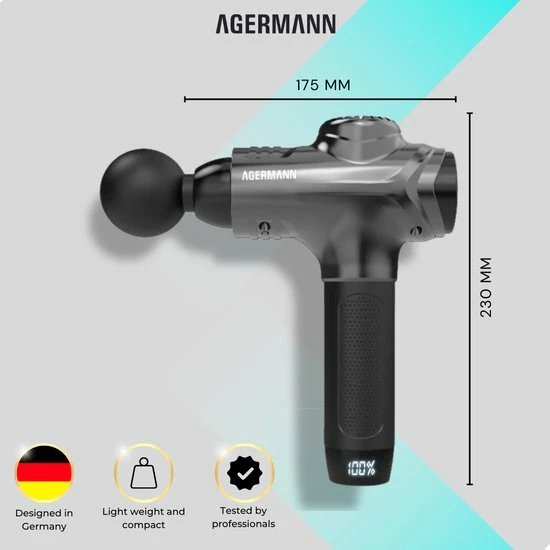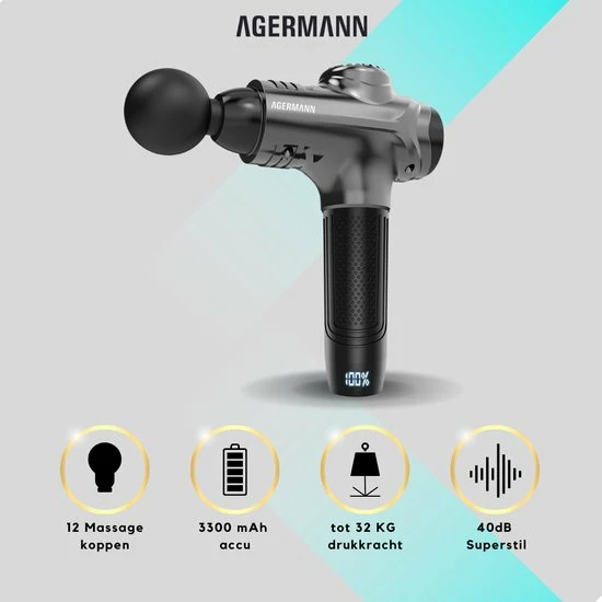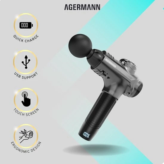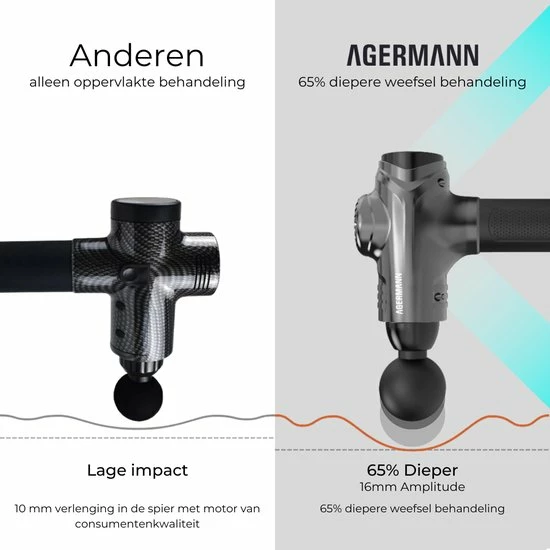 Agermann’s nieuw ontwikkelde product maakt gebruik van een nieuw ontwerp met de nieuwste technologieën. Met deze vernieuwde technologieën dringt het massageapparaat tot 80% dieper door in de spieren ten opzichte van andere massageapparaten. Verder is deze massage gun de stilste in zijn prijsklasse!