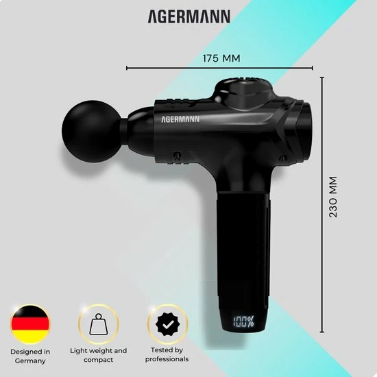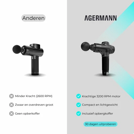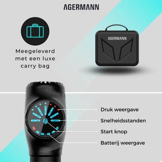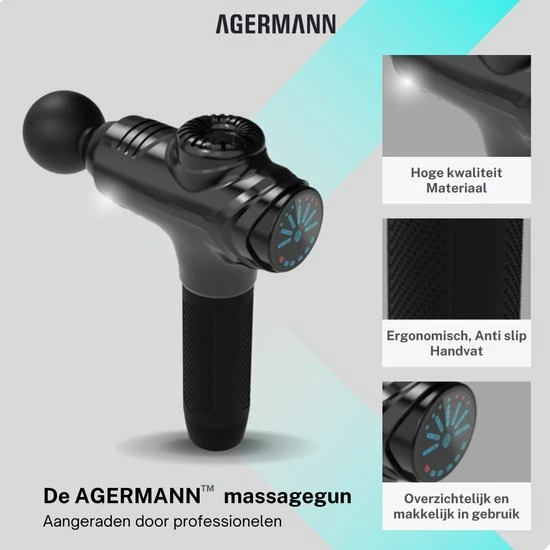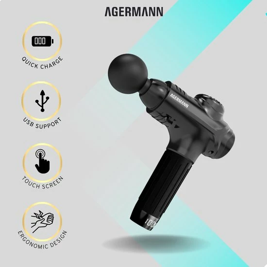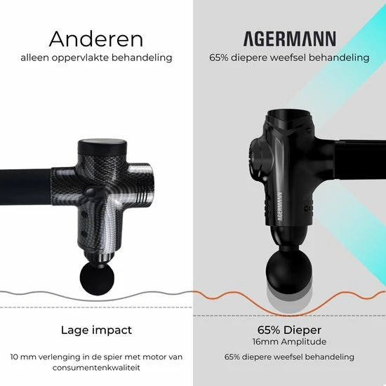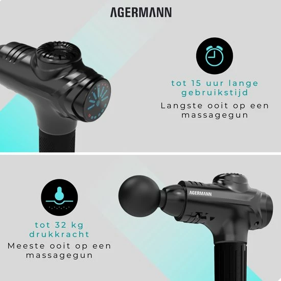 Agermann’s nieuw ontwikkelde product maakt gebruik van een nieuw ontwerp met de nieuwste technologieën. Met deze vernieuwde technologieën dringt het massageapparaat tot 80% dieper door in de spieren ten opzichte van andere massageapparaten. Verder is deze massage gun de stilste in zijn prijsklasse!