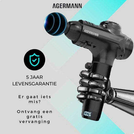 Bovendien zorgt onze garantie van 5 jaar (de langste garantieperiode die er is op een massage-apparaat) ervoor dat je nooit problemen ondervindt bij het gebruik van ons apparaat. En zelfs als dat wel het geval is, vervangen we het oude apparaat gratis door een nieuwer exemplaar. Het is een van de vele redenen waarom topsporters voor AGERMANN kiezen.