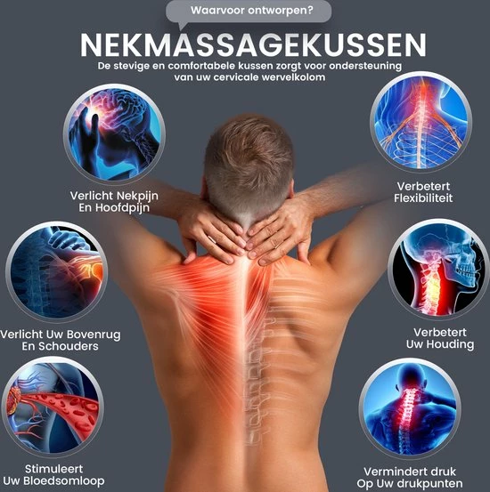 Dit massagekussen maakt gebruik van cervicale tractie. Cervicale tractie kan de volgende nek- en wervelklachten verhelpen en voorkomen: