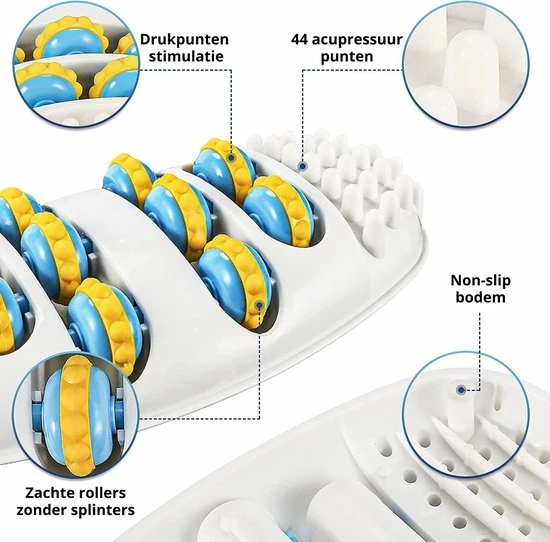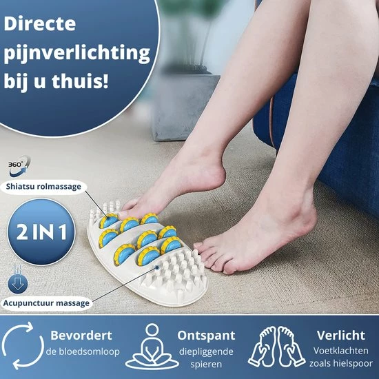 Deze multifunctionele voetmassager beschikt over 10 zachte shiatsu rollen die de spanning in uw voet wegneemt doormiddel van rubbere drukpunten. Ook kunt u genieten van een acupuntuur massage door de 44 acpuressuur punten die uw spieren tot diep in uw voet ontspannen.