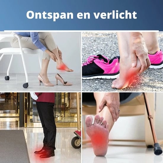 Een regelmatige voetmassage activeert de zenuwen en helpt stress in de voeten te verlichten. Het helpt bij het verlichten van hielspoor (fasciitis plantaris), pijn in de voetboog, myofasciale pijn, neuropathie of pijnlijke voeten en spieren. Het is ook geweldig voor het bevorderen van de bloedcirculatie en zorgt voor diepe ontspanning.