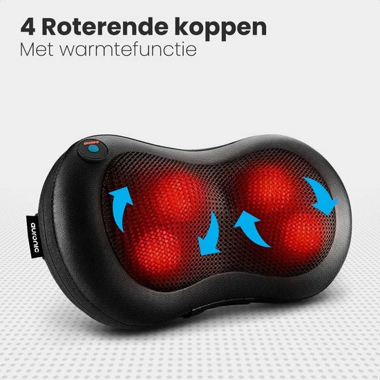 Het kussen is uitgerust met vier knedende massagekoppen. De massagekoppen draaien zowel met de klok mee als tegen de klok in. Je voelt dat je lichaam diep gemasseerd wordt en spanning langzaam wegtrekt.