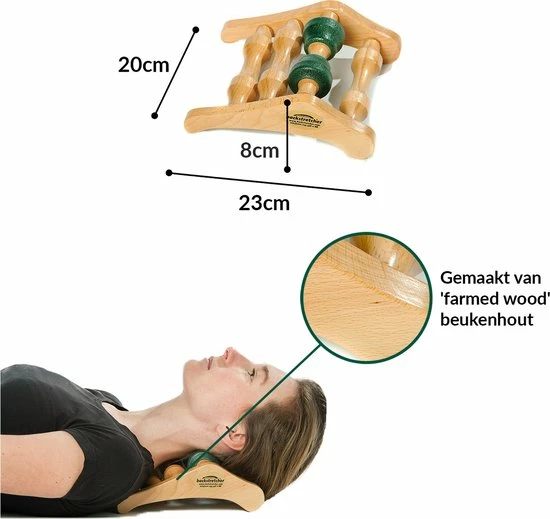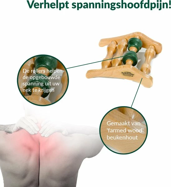 Een stijve en vastzittende nek kan veel bijverschijnselen opleveren zoals spanningshoofdpijnen, vastzittende schouderbladen en een verkeerde lichaamshouding. Spanningshoofdpijn wordt veroorzaakt door spierspanningen in de hals, de schouders en het hoofd; spierspanningen kunnen het gevolg zijn van een ongemakkelijke lichaamshouding, sociale of psychische spanningen of van vermoeidheid. Voor het bestrijden en voorkomen van deze klachten zonder hulp van geneesmiddelen is de Neckstretcher veelal de uitkomst. De twee met rubber beklede rollers geven een acupressuur massage op de aanhechtingspunten van de monnikskapspier onder aan de schedel. Tevens krijg je door het gebruik van de Neckstretcher een langzame, lichte tractie op de nekwervels waardoor er meer ruimte wordt gecre?erd bij de tussenwervels.