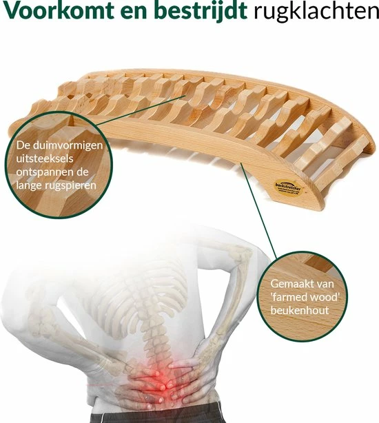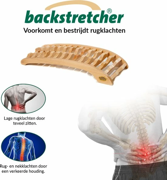 De Backstretcher masseert, rekt en mobiliseert je rug zodat rugklachten kunnen worden voorkomen of verdwijnen. Om goed te kunnen bewegen moet je borstwervelkolom ongeveer 5 graden kunnen strekken. Als dit niet mogelijk is, dan compenseert de rest van je wervelkolom dit. Zo ontstaat er in je rug een onnatuurlijke situatie, waarbij het ene deel van de wervelkolom de beperking van het andere deel compenseert. Wanneer dit gebeurt, staan je lange rugspieren constant onder spanning. Zo komt je rug in een vicieuze cirkel, waar hij vaak niet meer spontaan uit komt. Deze cirkel moet doorbroken worden om verbetering teweeg te brengen. Met de Backstretcher of de Rolastretcher (bevat rollers in plaats van houten uitsteeksels) wil dat bijna altijd lukken. Door de 30 duimvormige uitsteeksels van de Backstretcher ontspannen de lange rugspieren zich vooral rondom de borstwervels. De lichaamshouding wordt verbeterd, waardoor de druk op nek, schouders en onderrug wordt verminderd.