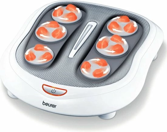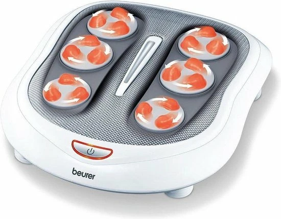 Beurer FM60 Voetmassage In de FM60 zijn achttien roterende massagekoppen aangebracht, die de druk- en kneedbewegingen van een Shiatsumassage nabootsen. De FM60 geeft een kalmerende massage van de voetreflexzones. De oppervlakte is gemaakt van ademend mesh en het apparaat heeft individueel instelbare hellingshoeken dankzij in hoogte verstelbare poten. Werkt op eenvoudige voetbediening en heeft twee massage standen.Shiatsu is een vorm van lichaamsmassage die ongeveer 100 jaar geleden in Japan is ontwikkeld. Deze massage techniek is gebaseerd op de voorstellingen van de traditionele Chinese geneeskunde. De basis is het systeem van de energiestromen in het menselijk lichaam.Kenmerken van de Beurer FM60 Voetmassage- Verzachtende voet massage met 18 massagekoppen (3×3 per voetgebied)- Met aan/uit warmte functie- Voetreflexzone massage- 2 massage standen- Met gekleurde LED aan/uit knop- Oppervlak gemaakt van luchtdoorlatend materiaal- Kabel opslag- Individueel regelbare verstelbare knikstand- 50 wattGarantie: 3 jaar