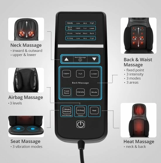 Stel kneden, stampen, knijpen in de airbag, vibratie, verwarming en spotmassage als ??n geheel in om u een spa-achtige massage-ervaring te bieden..