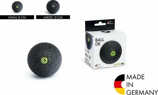 De Blackroll Ball is de perfecte aanvulling op de Blackroll Foam Roller. Deze bal is precies wat je nodig hebt bij zelfmassage van verschillende delen van het lichaam. Je kunt de bal ook gebruiken voor oefeningen van bijv. de fysiotherapeut, in plaats van een tennisbal. De bal met een diameter van 12 cm is wat groter dan zijn kleine broertje van 8 cm waardoor de bal iets makkelijker te gebruiken is op grotere oppervlakten zoals bijvoorbeeld de rug. De 8 cm bal is daarentegen weer fijner voor dieper gelegen en moeilijk te bereiken spieren in bijvoorbeeld de nek, schouders en borst.