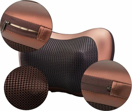 Kussen massage nek massager Toepassing: Kussens massage: Nek Schouders Rug Dijen Kuiten Voeten Technische specificaties: Gemaakt van hoogwaardige materialen 4 roterende massagekoppen Afneembaar Dekbedovertrek Bediening met ??n knop: AAN / UIT Autoadapter: 2A Vermogen: 24 W Voltage: AC 110-240V Twee standen: normaal en infrarood Ingebouwde timer: schakelt uit na 15 minuten Afmetingen: 30cm x 19cm x 10cm Kleur: bruin Set bevat : Gloednieuw Kussen masseren Oplader Autolader