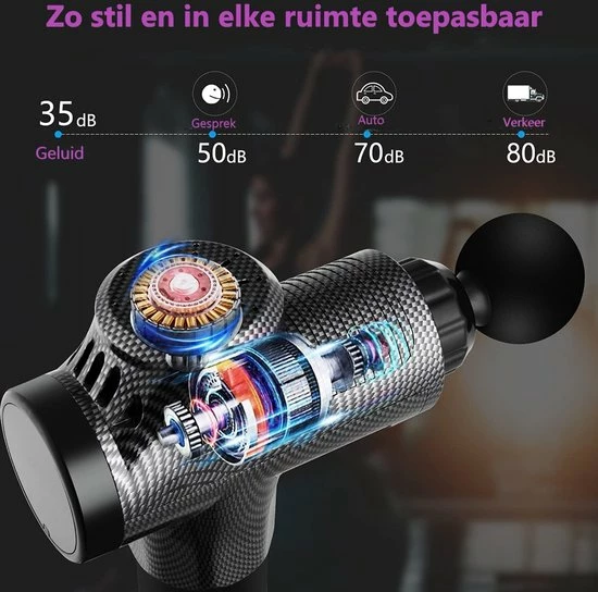 Met een nieuw ontwikkelde ruisonderdrukkende technologie (borstelloze motor) is de massage gun uiterst stil (35dB – 40dB), maar tegelijk ook uiterst krachtig. Deze zorgt ervoor dat je hem overal kan toepassen.