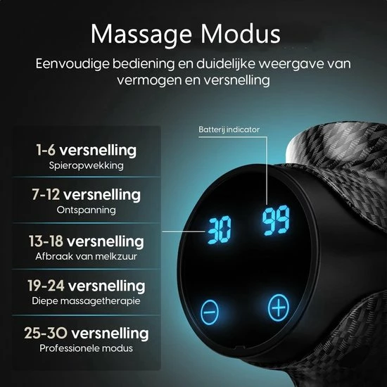 30 Snelheden (i.p.v. de 20 snelheden bij traditionele massage guns)