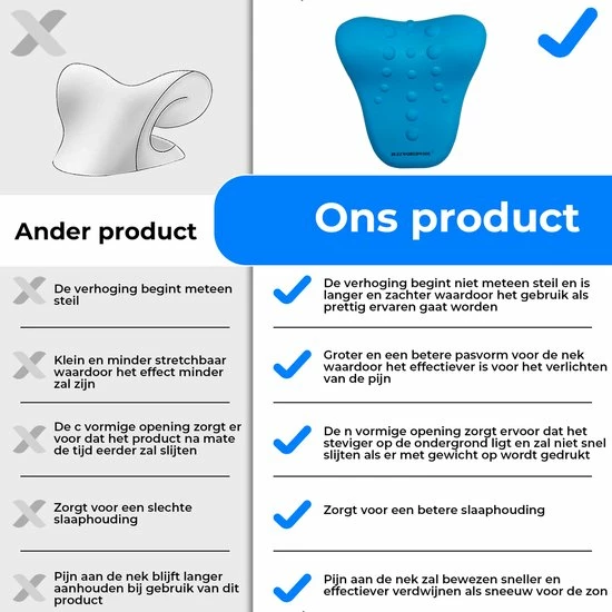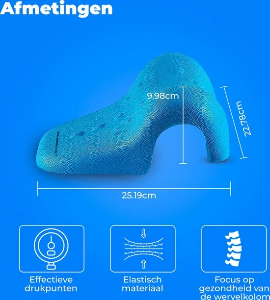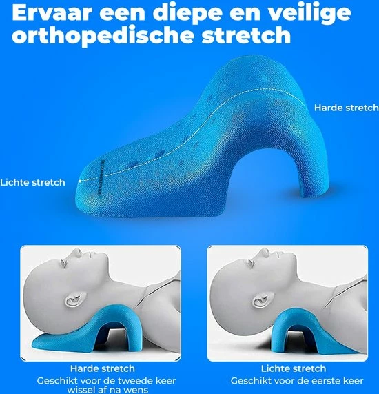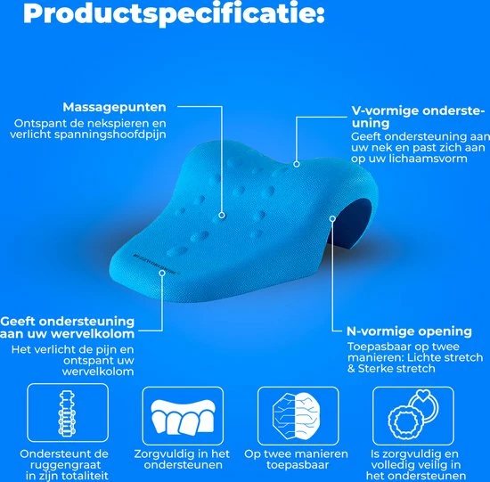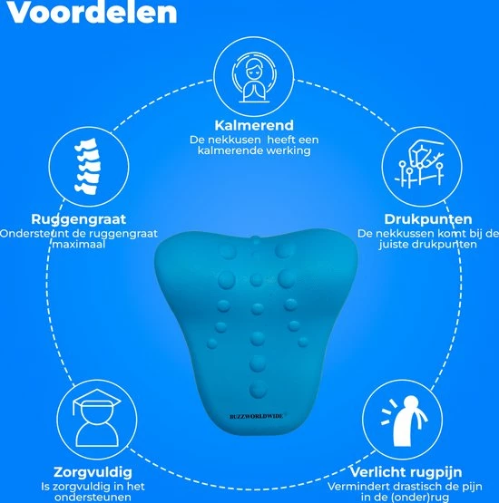 Ervaart u ook last van uw nek? Wilt u dit verhelpen? Is uw antwoord op beide vragen een ?ja? dan is de nekstretcher van Buzzworldwide iets voor u! Veel mensen hebben weleens tot vaak last van nekpijn door verschillende oorzaken. Het meest voorkomende probleem van nekklachten is een verkeerde houding. Een slechte houding zorgt voor veel spierspanning in de nek met als gevolg, hoofd- en nekpijn, vermoeidheid, een slechte bloedcirculatie, en nog veel meer klachten. Oorzaken klachten Sommigen hebben een slechte slaaphouding of inspannend werk. Anderen hebben een verkeerde houding bij het gebruiken van een laptop, telefoon, boek of tv. Het resultaat is een vooruit gebogen houding, waardoor de druk op uw nek toeneemt.