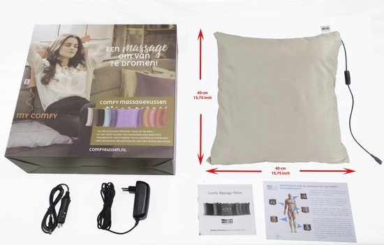 Uniek massagekussen van Comfy. In dit echt zachte kussen zitten vier massagebollen die het lichaam masseren. Naar keuze heb je de mogelijkheid om de infraroodwarmte erbij aan te zetten tijdens het masseren.