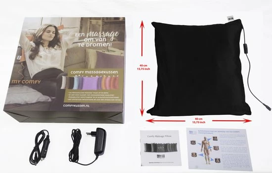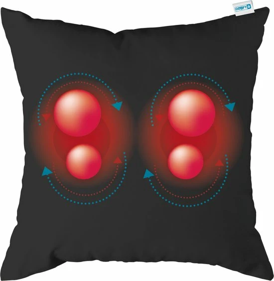 Uniek massagekussen van Comfy. In dit echt zachte kussen zitten vier massagebollen die het lichaam masseren. Naar keuze heb je de mogelijkheid om de infraroodwarmte erbij aan te zetten tijdens het masseren.