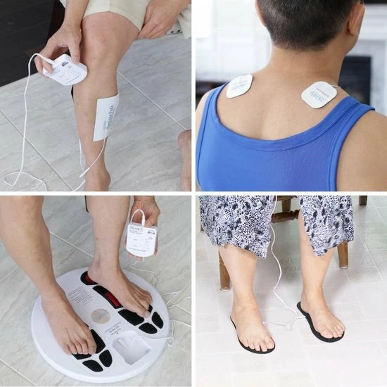 Bevestig de pijnverlichtende pads aan de hoofdunit, spray water op uw voetzolen en plaats uw voeten op de pads en ontspan! De tens massage zal pijnlijke voeten, zere benen, spanningshoofdpijn, nekpijn, rugpijn, kniepijn en spanningen in de schouder helpen te verlichten. De massage duurt slechts 20 minuten en is veilig toe te passen in combinatie met medicatie en metalen implantaten.