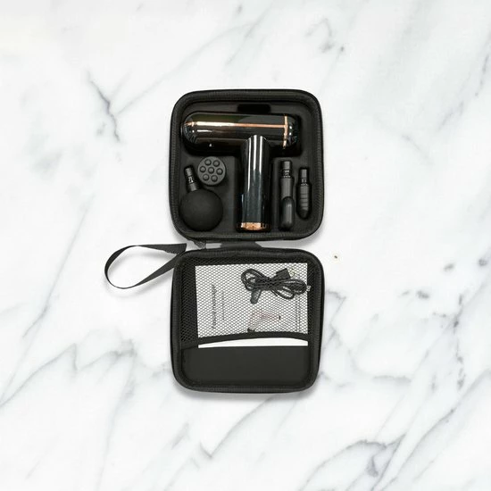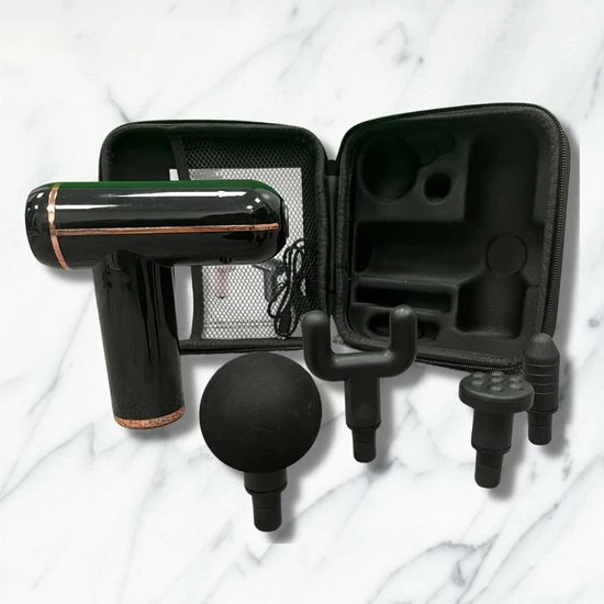 Één van de grootste voordelen van het hebben van een massage gun is dat het een krachtig hulpmiddel is om specifieke probleemzones te behandelen met de druk van een knop. Zo wordt onze massage gun geleverd met vier verschillende opzetstukken, waarmee je zeer gericht kunt werken. De massage gun werkt doormiddel van vibratietherapie. Het gaat hier dus om een massage die druk uitoefent in het spierweefsel en tegelijkertijd op een hoge frequentie. Je kunt daarom met dit apparaat heel gericht en diep op de probleemzone inwerken.