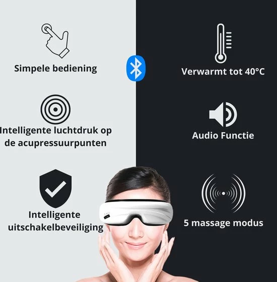 Zorg dat jouw vitamine M nooit te laag is met het Fambz Relax Oogmassage apparaat! Dé oplossing tegen hoofdklachten, migraine, stijfheid en stress door middel van een gesimuleerde massage door intelligente luchtdruk en multi frequente vibraties. De 5 verschillende massagestanden, Bluetooth functie én het warmte kompres relaxen jouw lichaam, geest en ziel. Geniet met Fambz weer van een fantastisch relaxed leven!