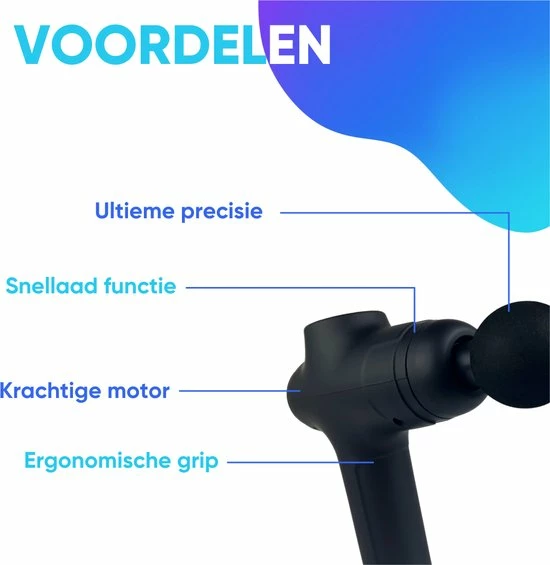 We kennen het allemaal wel na het sporten spierpijn, je bent uitgeput en wil lekker op de bank zitten en bijkomen van de training. Maar wist je dat het gebruik van een massage gun stimuleert de bloedsomloop en helpt afvalstoffen uit de spieren af te voeren. Naast het helpen ontspannen van de spieren kan een massage gun ook helpen om blessures te voorkomen. Het masseren van de spieren met een massage pistool voorkomt verklevingen.