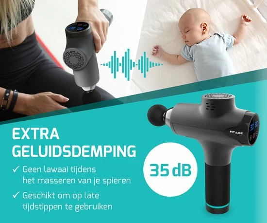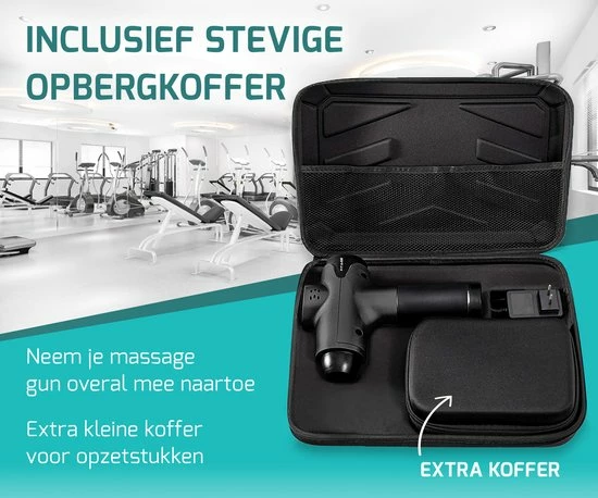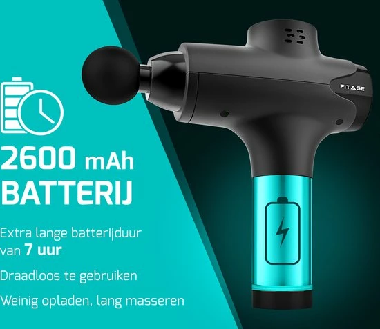 De FITAGE Massage Gun heeft een overzichtelijke Nederlandse en Engelse handleiding en is na het opladen direct klaar voor een heerlijke massage. Doordat de massage gun draadloos is, kun je hem altijd en overal gebruiken. Dankzij extra geluidsdemping is het massage pistool bovendien erg stil. Dit betekent dat je hem ook kunt gebruiken terwijl je TV kijkt, of terwijl andere mensen in huis al slapen. Zo hoef je nooit meer een massage over te slaan! Berg je mobiele massage gun op in de bijgeleverde koffer of neem ?m mee op reis. Zo hoef je je gezondheidsdoelen nooit meer uit het oog te verliezen, waar je ook bent!