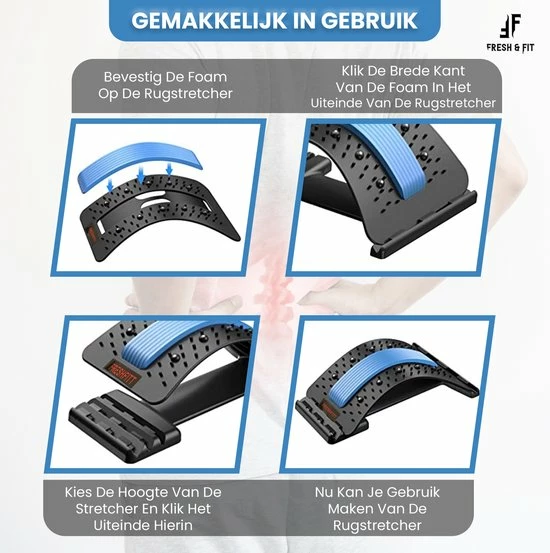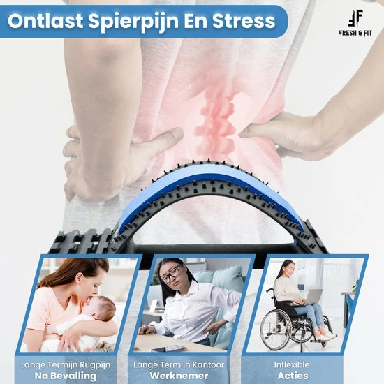 Vaak last van rugpijn? Die vervelende steek in in je boven- of onderrug? Na een bijvoorbeeld een lange thuiswerkdag of een lange autorit kan dit erg vervelend zijn. Met onze rugstretcher worden de juiste drukpunten geactiveerd, wordt de bloedsomloop versterkt en komt het herstelproces snel op gang.