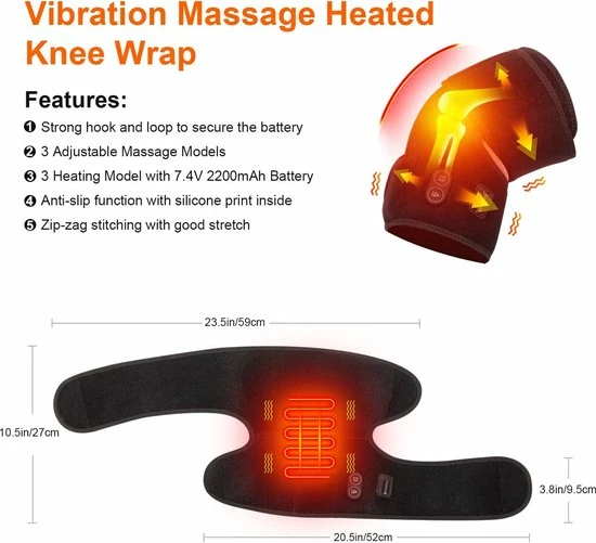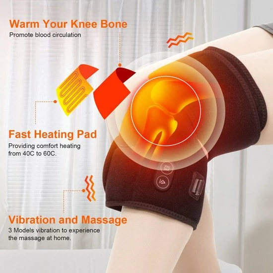 Deze verwarmde kniebrace wrap biedt krachtige vibratie massage en 3 Niveaus verwarming, die de persoon helpt om spierpijn en gewrichtspijn, spanning en verstuiking te verlichten, evenals de meniscus, bot pijnlijk, bursitis en chronische pijnen, krampen.