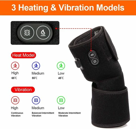 3 Niveaus instelbare functie zijn beschikbaar zowel voor de verwarming en de trilling. U kunt het op basis van uw gezondheidstoestand aanpassen om het beste comfort te krijgen. De 7,4V 2200mAh Lithium batterij zorgt voor voldoende warmte in de koude winter. De vibratiemassage en verwarming kunnen tegelijkertijd of afzonderlijk worden gebruikt (u kunt kiezen voor massage of verwarming, beide kunnen afzonderlijk worden gebruikt).