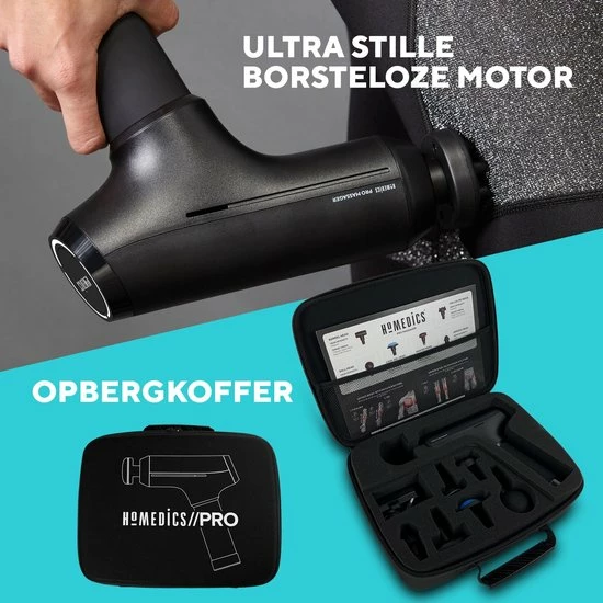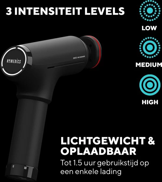 De HoMedics PGM-1000 Massage Gun is geschikt voor het verlichten en ontspannen van pijnlijke spieren door middel van een compressie- en klopmassage. Met de 6 soorten opzetstukken en 3 intensiteitsniveaus is deze massagegun voor elk type spier geschikt. Het draadloze en oplaadbare massage pistool heeft een batterijlevensduur tot wel 5 uur. Het ultrastil en lichtgewicht ontwerp maakt de gun makkelijk in gebruik. Daarbij heeft het massage apparaat een unieke warmtefunctie, zodat pijnlijke spieren nog effectiever en sneller kalmeren.