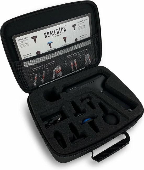 Door middel van 6 verschillende opzetkoppen is de Homedics massage gun veelzijdig te gebruiken. Elk opzetstuk heeft zijn eigen functies. De set bevat onder andere de ?Cool? opzetkop, die een zacht en verkoelend effect geeft, en een ?Cellulite? opzetkop, die een sinaasappelhuid glad strijkt.