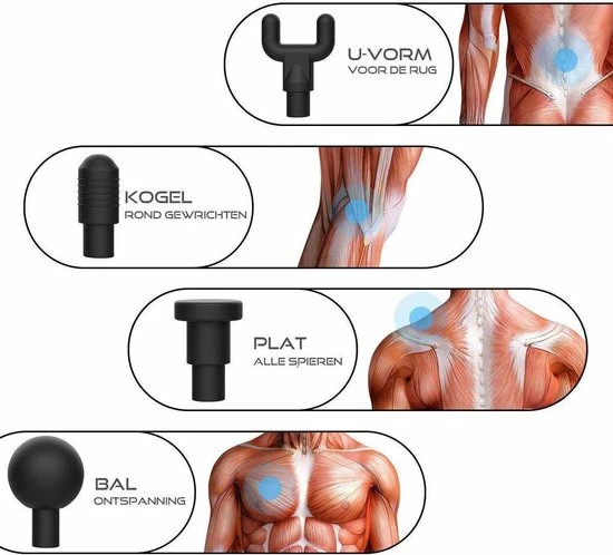 Door de maximale drukbeweging per minuut voelt het alsof je een echte professionele massage krijgt. Het apparaat heeft 6 snelheidsniveaus en 4 bijgeleverde opzetstukken, elk met een aparte functie. Aan de hand van welk lichaamsgebied je wilt behandelen kun je de massage kop veranderen en de snelheid wijzigen. De kracht waarmee je gemasseerd wilt worden is volledig af te stellen naar eigen wensen.