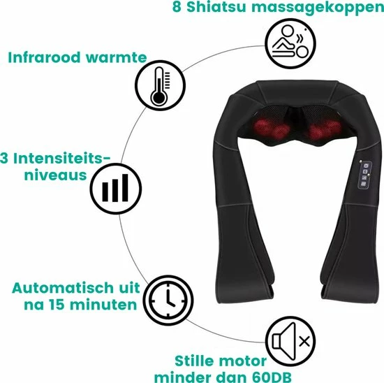 Met zijn 8 massagekoppen en het gebruik van speciale infrarood warmte, bevordert de Shiatsu massagekussen effectiever de bloedcirculatie en ontspant je spieren snel. door te kiezen voor een langzame massagestand en weinig druk is de Shiatsu massagekussen ook ideaal om mee te ontstressen.