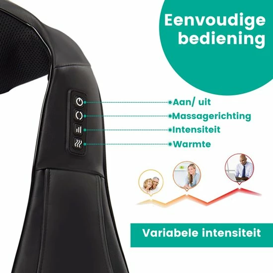Onze Shiatsu massagekussen is voor bijna alle spiergroepen te gebruiken. Met de comfortabele armlussen kan je het massagekussen in elke positie bevestigen. Zo kan je de kussen bijvoorbeeld ook perfect gebruiken voor op je benen. 1 massageapparaat voor meerdere spiergroepen en massages, wel zo makkelijk.