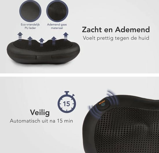 Een massage is heerlijk, maar overstimulatie van de spieren is niet wenselijk. Om te voorkomen dat spieren teveel gestimuleerd worden, schakelt het massagekussen zichzelf automatisch uit na 15 minuten. Uiteraard is het massagekussen beveiligd tegen oververhitten en zal zichzelf uitschakelen als dat dreigt te gebeuren. Val je uit ontspanning in slaap ben je dus veilig en beschermd.