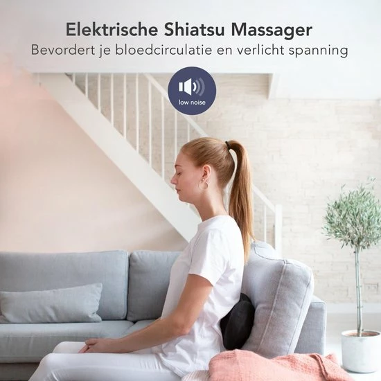 Bevestig dit luxe massagekussen aan je (bureau)stoel en ervaar een diepe Shiatsu massage. Het apparaat heeft vier massagekoppen met warmtefunctie voor een ontspannen ervaring. Na 15 minuten schakelt het kussen automatisch uit. Masseer je nek, schouders, (onder)rug of zelfs de kuiten. Kom op kantoor of tijdens het bankhangen heerlijk tot ontspanning!