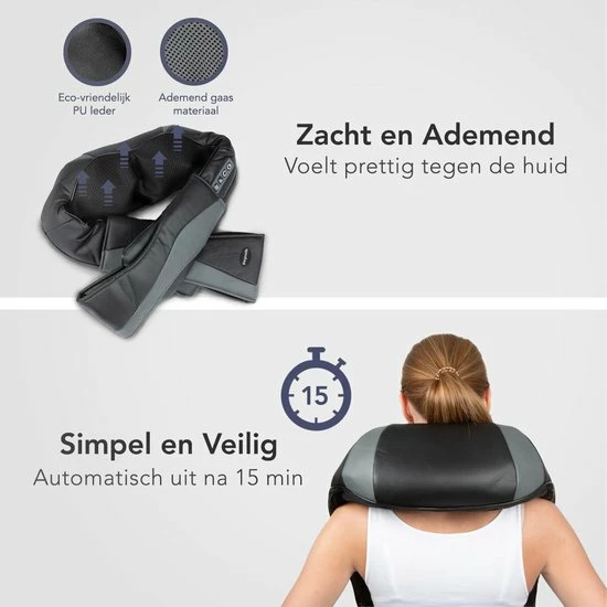 Een massage is heerlijk, maar overstimulatie van de spieren is niet wenselijk. Om te voorkomen dat spieren te veel gestimuleerd worden, schakelt het massagekussen zichzelf automatisch uit na 15 minuten. Uiteraard is het massagekussen beveiligd tegen oververhitten en zal het zichzelf uitschakelen als dat dreigt te gebeuren. Val je uit ontspanning in slaap, dan ben je dus veilig en beschermd.