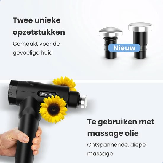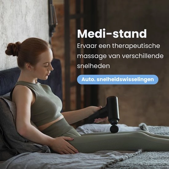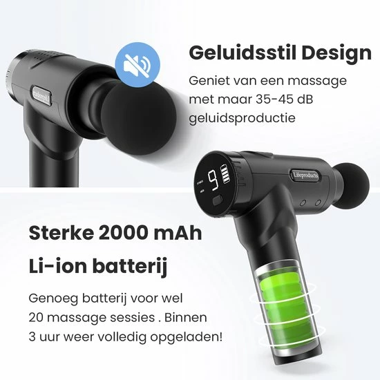 Een massage gun werkt ontspannend. In het dagelijkse leven kunnen spanningen oplopen en kunnen spieren verstijven. Met een massage gun kom jij weer helemaal tot rust. Bij de Lifeproducts Massage Gun Elite worden twee metalen opzetstukken meegeleverd. Deze kunnen gebruikt worden met massage olie voor een ultiem ontspannende massage bij jou thuis! Daarbij beschikt de massage gun over een MEDI modus. Dit is een unieke functie van de Lifeproducts Massage Gun Elite. De snelheden worden in deze stand automatisch afgewisseld. Hierdoor krijg je altijd een heerlijk afwisselende massage. De massage gun is met een geluidsproductie van