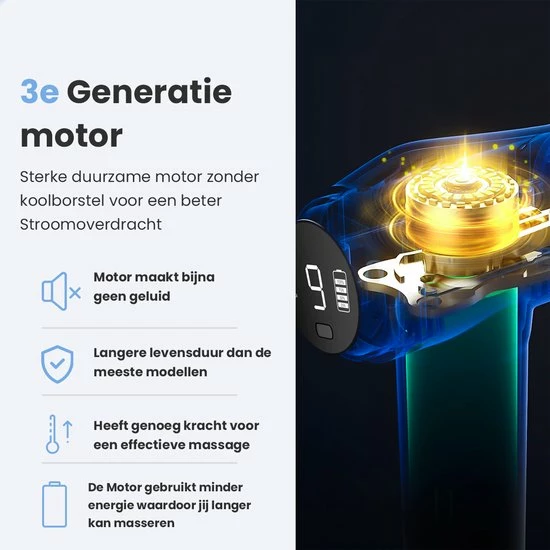 - Kogelvormige kop: Het lage intensiteitsniveau maakt deze kop geschikt voor alle spieren en gewrichten.