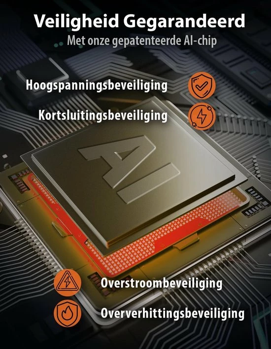 Beveiliging: Oververhittingsbescherming, schakelt na 10 minuten automatisch uit (geen zorgen, je kunt hem gelijk hierna weer aanzetten)