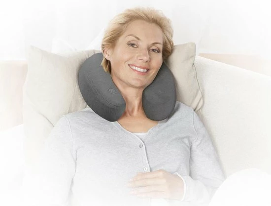 Een super fijn nekmassagekussen voor thuis en onderweg! De rustgevende vibratiemassage masseert heerlijk de schouders en nek terwijl u achterover leunt. De NM 870 is gemaakt van comfortabel vormschuim en de hoes is voorzien van een extra zachte en pluizige vacht. Met dit kussen is het echt genieten tijdens een lange reis. Met het ge?ntegreerde ?One Touch?-bedieningspaneel kan de NM 870 eenvoudig in- en uitgeschakeld worden. De NM 870 wordt standaard geleverd met batterijen en handige opbergtas.