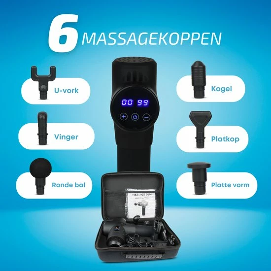 Met de 6 verschillende massagekoppen kan jij elke spier op de juiste manier masseren. De bloedsomloop wordt gestimuleerd en afvalstoffen beter afgevoerd. Spierpijn en blessures worden hierdoor drastisch verminderd. Zo staat niets jou meer in de weg om jouw fitnessdoelen te behalen!