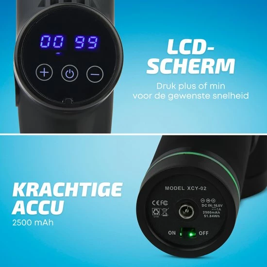 Door de krachtige accu beschikt deze massage gun over 30 intensiteitsniveaus. Begin met het losmaken van jouw spieren op een laag niveau en bouw langzaam op voor een deep tissue massage. Hoe vaker jij de massage gun gebruikt hoe sneller jij kan opbouwen naar een hoog intensiteitsniveau!