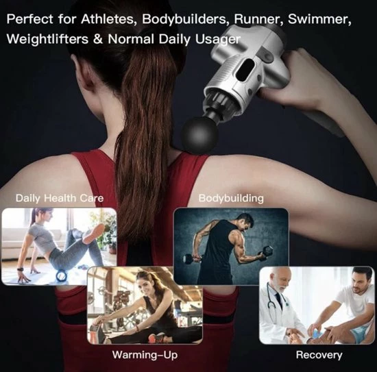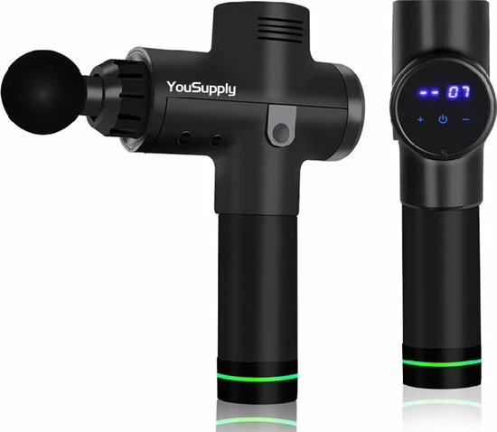 Wil jij je spieren behandelen met een gerichte klopmassage? Ontspan en kom helemaal tot rust, of pak die irritante blessure aan met de Youssupply massage gun PRO. Gebruik 6 verschillende massagekoppen om je gehele lichaam aan te pakken. Ga voor een deep tissue massage of warm alleen je spieren op met de 20 verschillende snelheidsstanden. De batterij is in 2 uurvolledig opgeladen en gaat 5 tot 6uur lang mee. Op het LCD-scherm zie je precies hoeveel batterij er over is en in welke stand het apparaat staat. Met slechts 35-45 dB is het apparaat enorm stil waardoor je lekker kan relaxen. Neem de massagegun daarnaast makkelijk overal mee naartoe in de luxe carry case!.