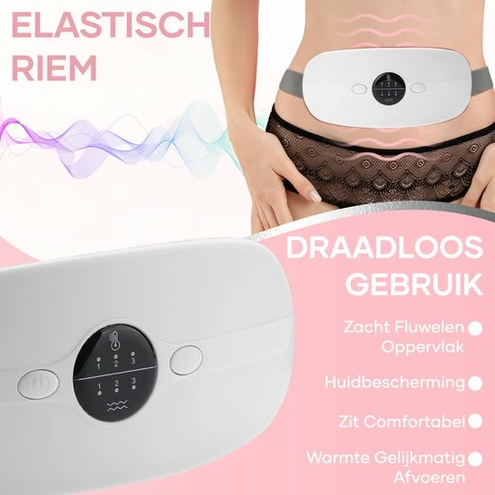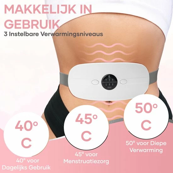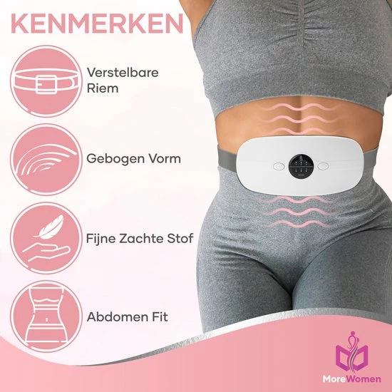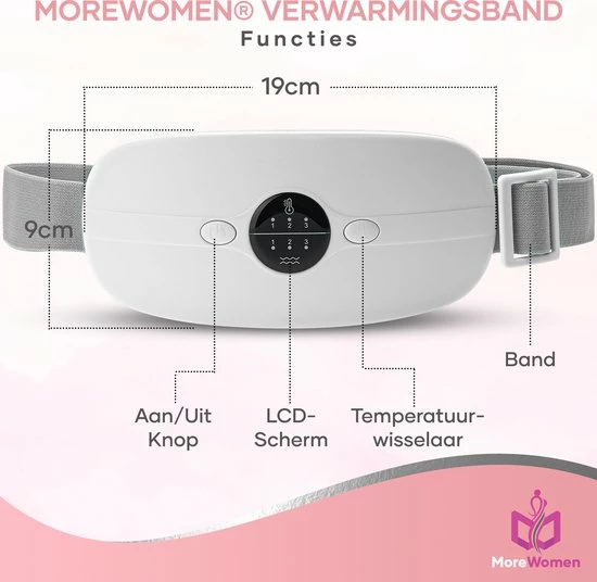 MoreWomen? MVK02 – Menstruatie Warmteband – Verwarmde Menstruatieband – Verwarmingsband – Warmtekussen – 3 Warmtestanden – Triltechnologie – Wit