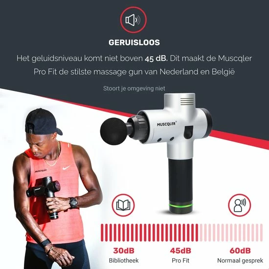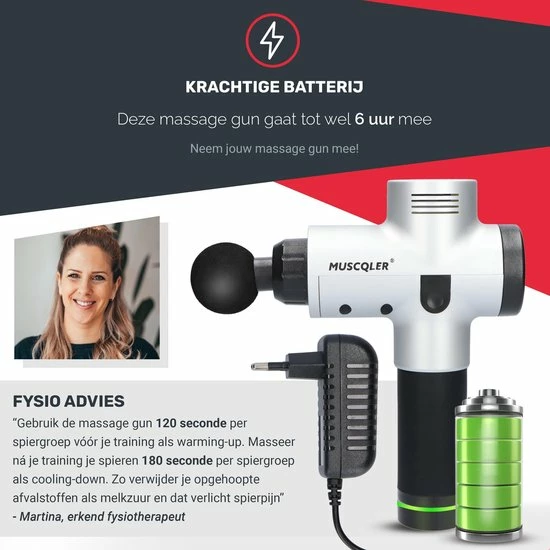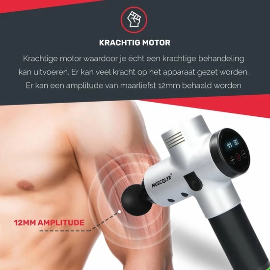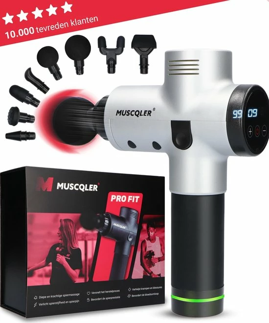 De MUSCQLER ? Pro Fit massage gun is speciaal ontworpen en vernieuwd voor fanatieke sporters zoals jij die graag extra goed voor hun spieren willen zorgen. De ge?nnoveerde massage gun wordt gebruikt door jou om een gezonde en krachtige spiermassage te kunnen verzorgen na een zware training. Met dit massage apparaat voorkom en behandel jij vervelende blessures en hardnekkige spierpijn als een professional.