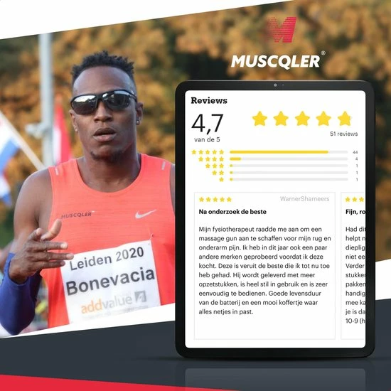 Met de vernieuwde klopmassage technologie worden je spieren intensief gemasseerd. Deze ontwikkelde technologie bevordert de doorbloeding van je spieren en pezen. Door de spieren te behandelen met de massage gun worden je spieren goed warm gemasseerd. Dit is de beste manier om jouw spieren voor te bereiden op een zware inspanning. Door je spieren goed voor te bereiden op een zware inspanning met de MUSCQLER ? Pro Fit reduceer je de kans op een vervelende blessure met ongeveer 85%.