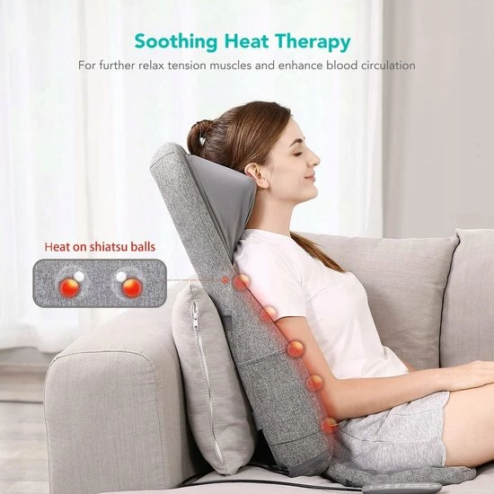 OPTIONELE MODUS: De Rugmassage heeft een afstandsbediening, eenvoudig te bedienen; Er zijn 3 soorten intensiteiten om uit te kiezen, kies de intensiteit volgens uw eigen tolerantie; 15 minuten automatische uitschakeling, veilig en betrouwbaar.