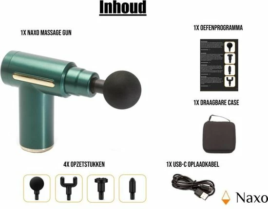 De Naxo Massage Gun is de nieuwste manier voor spierherstel voor- en na een zware training. De Massage Gun gebruikt klop- en vibratiemassage voor sneller herstel van de spieren. Naast herstel voor de spieren is het ook de perfecte warming-up voor sporters. Het apparaat behandelt diverse spiergroepen in het lichaam en zorgt voor een goede stimulatie van de bloedsomloop. Dit apparaat wordt door fysiotherapeuten in Nederland aanbevolen voor gerichte spierbehandeling.
