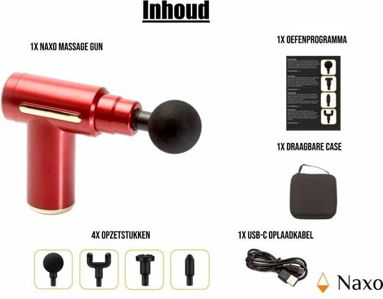 De Naxo Massage Gun is de nieuwste manier voor spierherstel voor- en na een zware training. De Massage Gun gebruikt klop- en vibratiemassage voor sneller herstel van de spieren. Naast herstel voor de spieren is het ook de perfecte warming-up voor sporters. Het apparaat behandelt diverse spiergroepen in het lichaam en zorgt voor een goede stimulatie van de bloedsomloop. Dit apparaat wordt door fysiotherapeuten in Nederland aanbevolen voor gerichte spierbehandeling.