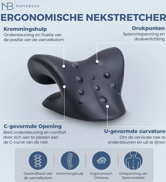 Wil je nooit meer last ervaren van stijve schouders of vervelende hoofdpijn? Bestel dan direct de slimme nekstretcher van Novabeau? en geef je lichaam de ontspanning die het verdient!