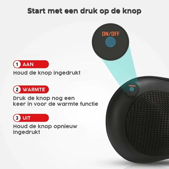 Dit apparaat masseert op een manier! Het verschaft shiatsu kneedmassage voor een complete massage. Je legt het apparaat bijvoorbeeld over je schouders en houdt het vast met de armlussen. Je zet het apparaat aan en geniet van de massage. Je kunt het apparaat zelf verschuiven zodat het net bij dat pijnlijke plekje kan. Uiteraard kun je het apparaat ook op andere plekken dan je rug of nek zijn werk laten doen, zoals je buik, benen, rug of voeten. Na een kwartier schakelt het apparaat automatisch uit. Desgewenst kun je het uiteraard opnieuw opstarten.