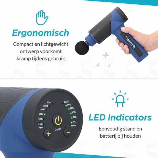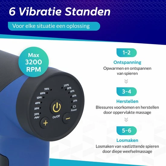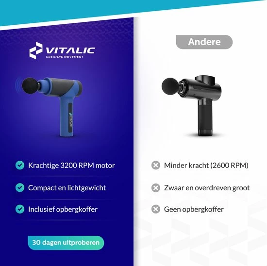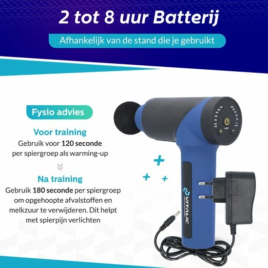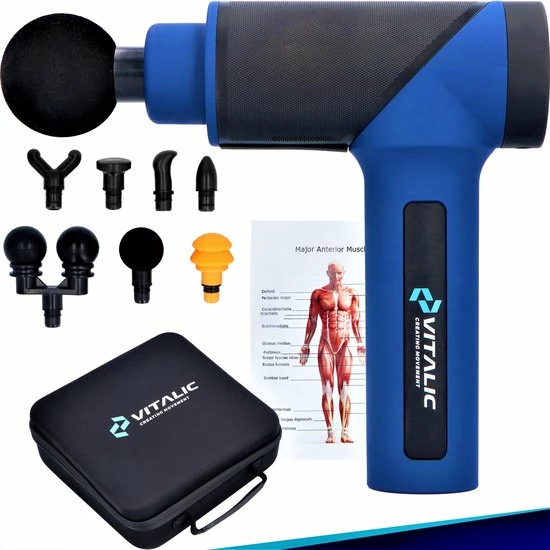 Als serieuze atleet is het onvermijdelijk…. Net wanneer je een aantal weken achter elkaar heerlijk je trainingen aan het afwerken bent steken ze weer de kop op: Overbelastingsblessures, pijntjes en andere fysieke ongemakken. Erg vervelend en altijd net op een moment dat je deze klachten het minst goed kunt gebruiken. Wanneer je deze klachten niet proactief te lijf gaat kun je zomaar weken of maanden aan de kant staan. Om overbelasting klachten te verhelpen kun je naar de fysiotherapeut gaan of kun je rekken en strekken om je spieren wat soepeler te maken. Deze methoden zijn belangrijk en kunnen effectief zijn maar… er is een snellere en effectievere manier. De Vitalic Massagegun heeft 6 intensiteitsniveaus en 7 verschillende massagekoppen. Hiermee masseer je je spieren snel en gemakkelijk helemaal los waardoor spierspanning en tendinitis verdwijnt waardoor je weer snel op weg bent naar jou volgende sportieve doel!